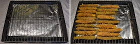 Τα τοποθετούμε προσεκτικά πάνω στη σχάρα που την έχουμε βάλει μέσα στο ρηχό ταψί του φούρνου.