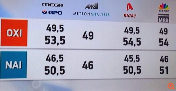 GPO: «ΟΧΙ» 51,5 - «ΝΑΙ» 48,5